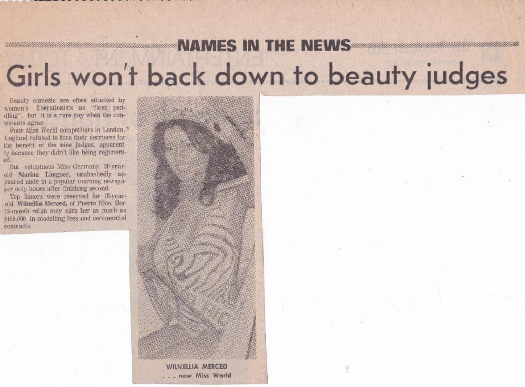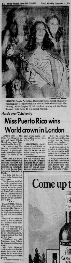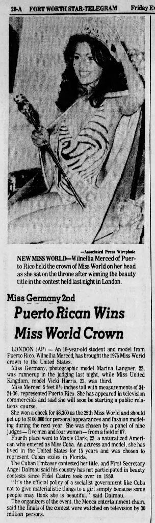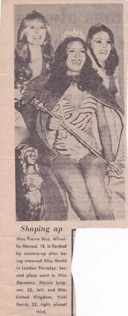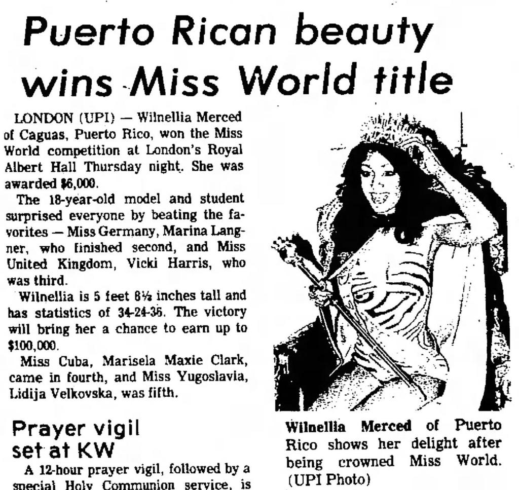 Miss Mundo 1975, Wilnelia Merced de Puerto Rico
