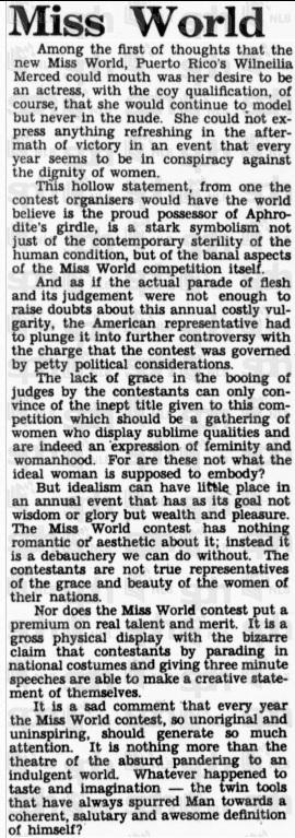 CHANGES IN MISS WORLD AND NATIONAL COMPETITIONS.-