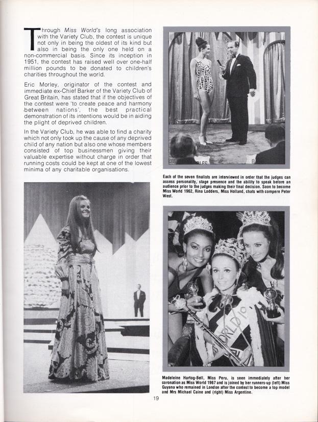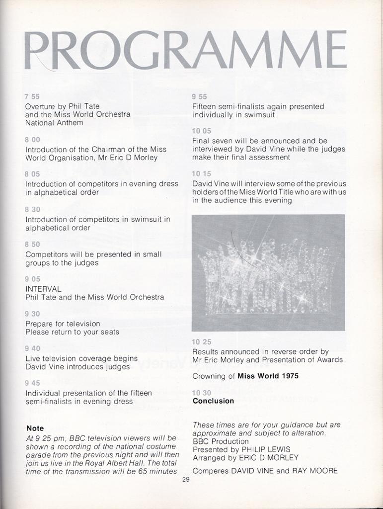 1975 was a very special year for me. At a young age I discovered an interest in topics that became my two great passions. One of these was political geography, a predilection that had been born in me months before. I was only 7 years old and I loved learning about the world, its languages, cultures and customs, thanks to the encyclopedic book “World Almanac 1974” that my parents had given me. I recited the capitals of all the nations of the world and knew the flags of each of the countries that made up the globe. The other passion, that of beauty pageants, began precisely in 1975, when the also young María Conchita Alonso participated in the Miss Venezuela pageant. I was a child, but I remember vividly when I observed at a newspaper stand in front of the building where I lived in San Bernardino, Caracas, the cover of a magazine where María Conchita appeared in a revealing bathing suit. Coincidentally, my mother bought it and as I looked at her photo over and over again, I discovered that this had become “love at first sight”, a platonic love of a child. The date of the contest was close, I had seen the commercial announcing the contest from the Poliedro de Caracas and, of course, I wanted my María Conchita to be named as the most beautiful girl in the country. Days before, I had seen her on the TV program “Sabado Sensacional”, next to compere Amador Bendayán, singing “I want to have a million friends” and that voice made me fall in love. I remember that the broadcast of the contest, through Venevision, started somewhat late and I only managed to watch perhaps the first hour of the contest before my parents sent me to bed. It was a weekday and I had to get up early because I had to go to school. I remember that, when it was Maria Conchita’s turn to parade, she shouted at the MC Gilberto Correa, from backstage, that she was not ready, and asked to go to a commercial break !!. The next day I asked my mother who had won, crossing my fingers because she would have been my beloved candidate. Well, no, she had not won, it was the taller Miss Nueva Esparta and María Conchita had been in second place, to “Miss World” and I didn’t even know what that was. Months later, my mother told me that they were going to broadcast Miss World with my María Conchita and that there were girls from many countries. My two passions in a single television program !!. The 25th anniversary of Miss World were being celebrated, an event that due to my young age I did not know at the time. Glued to the screen, I did not miss details of the contest, so much so that I memorized the 67 contestants, their faces and their national costumes, in perfect alphabetical order !!. What happened during the broadcast of the event can be read in detail later in this article. Venezuela had achieved an excellent representation with María Conchita and, from that moment, I began to watch, year after year, the Miss Venezuela, the Miss Universe and the Miss World contests. The Morley’s London pageant, which was celebrating its “Silver Jubilee” that year, became the first international beauty pageant I had ever witnessed in my life and started a passion that would make me become, years later, not just a “missologist” (a word that by the way I invented back there in the early 90’s and that today is so well known in the world, with certain grammatical variants in some countries – Reinologist in Colombia and Missiologist in Puerto Rico-), but also in a historian of this type of events and, thanks to this, you can enjoy through these historical accounts of the Miss World contest that I am happy to share with you.