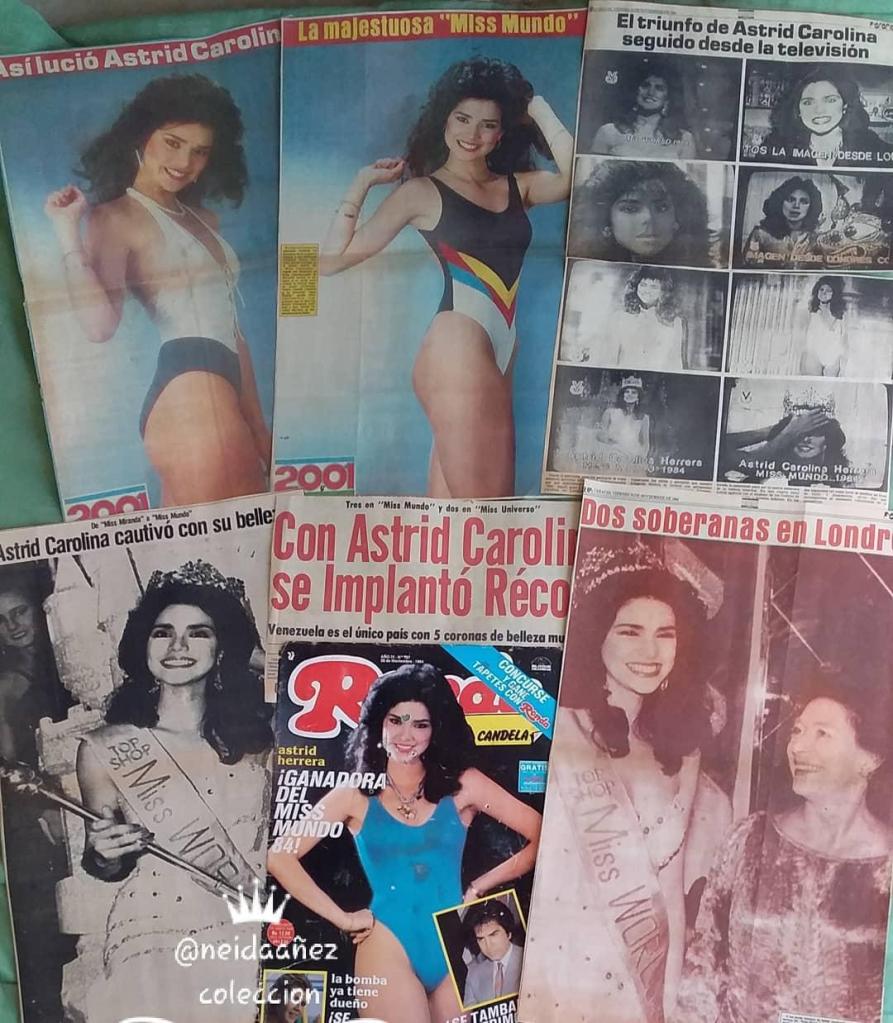* MISS VENEZUELA.- On Friday, May 11, the new “Miss Venezuela 1984” was chosen at the Macuto Sheraton Hotel Theater in Caraballeda among 23 candidates and where Miss World 1981, Pilin León, participated, riding on an elephant in a musical number of a circus produced by Joaquín Riviera. The lucky one was Carmen María Montiel, Miss Zulia, who attended Miss South America in Lima and Miss Universe in Miami. The girl chosen for Miss World was Miss Miranda, Astrid Carolina Herrera, who also took the Miss Photogenic award; and to Miss International, Miss Nueva Esparta, Miriam Leydermann. The remaining finalists were Carla Mariani (Carabobo), Mirla Ochoa (Delta Amacuro), María Teresa Ambrosino (Barinas), Carolina Cristancho (Aragua) and Ana Rosa Abad (Apure). Miss Amazonas, Consuelo Borges, who complained during the broadcast about not having time to retouch herself, was chosen Miss Sympathy, while Maribel Aguilar (Mérida) was Miss Congeniality and Alejandra Castro Egui (Guárico and sister of Miss Venezuela 1966) was awarded the Miss Elegance award.
