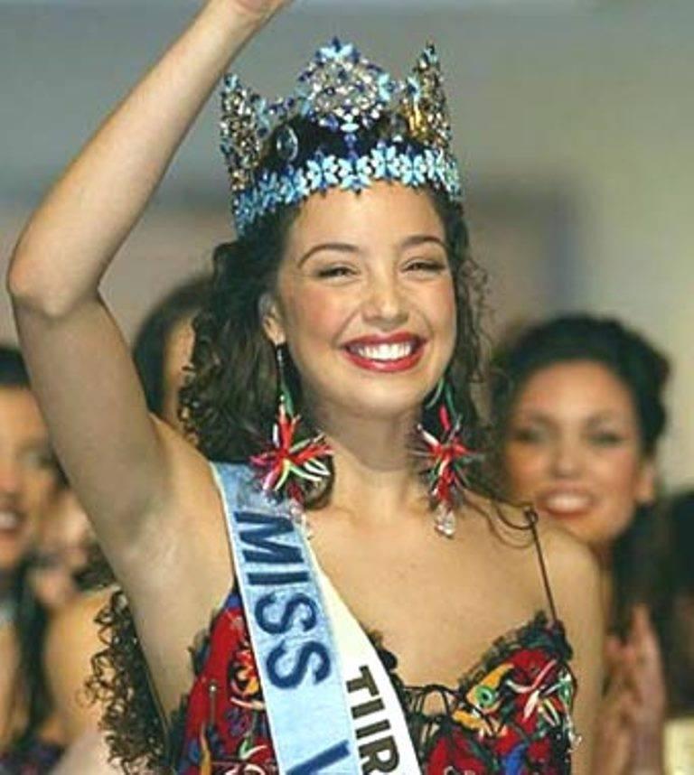 * MISS VENEZUELA WORLD.- In a show that was about to be ruined by a presidential chain of Chávez, the beautiful Goizeder Victoria Azúa Barrios, Miss Carabobo, was proclaimed on Saturday, August 31 as the new ‘Miss Venezuela World 2002’. The audience that was in Venevisión’s Studio 1 witnessed how this beautiful 18-year-old girl, born in San Felipe on February 23, 1984 and a 4th Semester student of Industrial Relations at the University of Carabobo, was taking everything, even being “the bump” of the night, something that caused rejoicing among her colleagues and the public present. Goizeder, of Basque grandparents, also won the awards for Miss Sympathy (elected by her companions), Miss Personality and Best Catwalk. Other winners on the same night were Miss Amazonas, Aida Yéspica (Best Skin); Miss Portuguesa, María Fernanda León (Best Face); Miss Capital District, Amara Barroeta (Best Figure); Miss Vargas, María Andreína Abrahamz (Best Hair) and Miss Yaracuy, Vanessa Fanesi (Miss Smile).