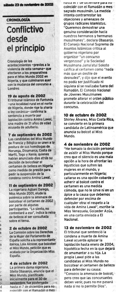 * MISS KOREA.- On Sunday, May 19, ‘Miss Korea 2002’ was chosen at the Auditorium of the Sejong Cultural Center. The winner was 19-year-old Na-Na Geum (to Miss Universe 2003) and her runner-ups were Yoo-Kyoung Jang (to Miss World 2002), Yoon-Joo Khi (to Miss International), Jin-Ah Lee, So- Yoon Kim, Jae-Nam Lee, and Yeon-Soo Kim. 64 beauties from all over Korea took part in the pageant.